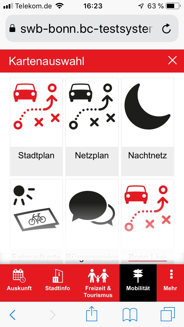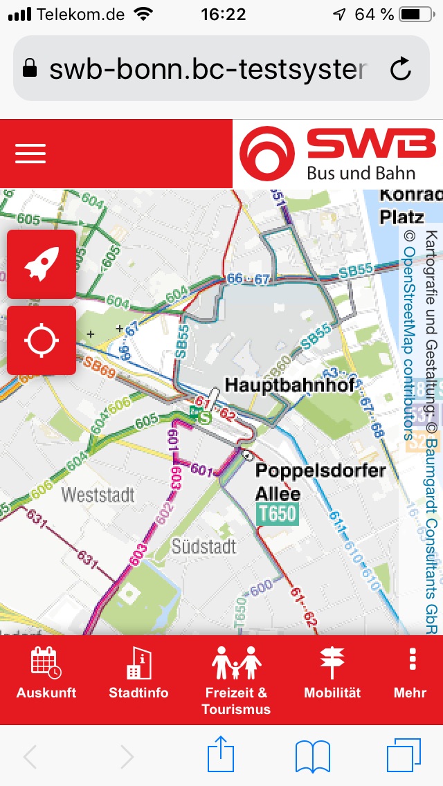 Mobilitäts-Apps versprechen eine schnelle und günstige Verbindung mit den jeweils passenden Verkehrsmitteln zu finden. Nach einer Untersuchung von drei Apps dieser Art durch die Stiftung Warentest war klar, dass dieses Versprechen nicht immer gehalten wird. Laut Brechthold verfügt "BonnMobil" über Echtzeitdaten. Mit der Option "Linie-live" können Fahrgäste den Standort der Fahrzeuge sehen. Bei Signalstörungen meldet sich automatisch die Bustechnik, dass der Bus im Stau steht und nicht weiterkommt. Die Verspätungen werden bei den Ankunfts- und Abfahrtszeiten berücksichtigt und angezeigt.