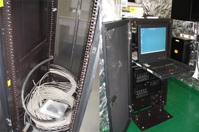 - Links: Rack mit vorbereiteter Verkabelung. Rechts: Montierter Rack. (Foto: Rainer Hinney)