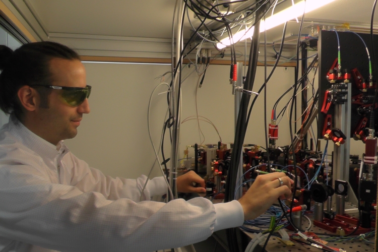 19.07.2017//Im Labor der Forschungsgruppe für Quantentechnologie an der Rheinischen Friedrich-Wilhelms-Universität Bonn stehen zwei Tische, vollgepackt mit kleinen Linsen und Spiegeln. Sie sind alle millimetergenau ausgerichtet. Das Herz des Versuchsaufbaus ist eine runde, silberne Vakuumkammer. In dieser Kammer befinden sich die Cäsium-Atome, auf die der Quantenrechner aufgebaut werden soll. "In dem Aufbau steckt jahrelange Arbeit", so Carsten Robens vom Institut für angewandte Physik. Er hat vor kurzem seine Doktorarbeit in der Projektgruppe von Professor Andrea Alberti geschrieben. Mittels Lasertechnik werden die Atome hier stark abgekühlt und sortiert. Das Ziel der Forschung ist es, einen vollwertigen und einsatzbereiten Quantencomputer zu bauen.