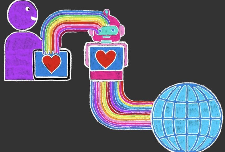 Teaserbild: Datenübertragung zwischen Mensch und KI // Bild: Ayse Can