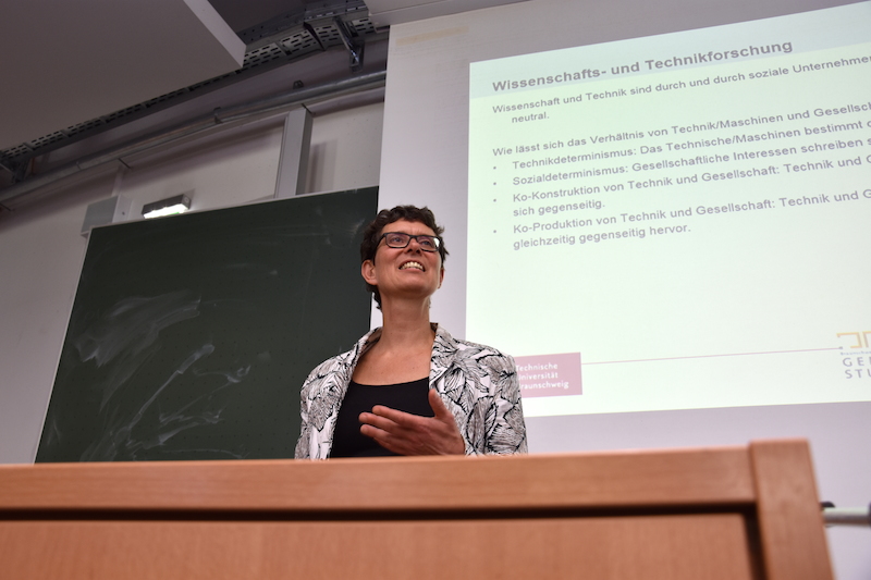 Zu Beginn des Vortrags warf Bath die Frage in den Raum, ob Technik neutral sei. Dazu nannte sie das Töten mit einer Waffe als Beispiel und fragte, wer dabei der Akteur und somit verantwortlich sei: die Waffe oder der Mensch? Durch lebhafte Diskussionen mit den Studierenden stellte sich heraus, dass der Mensch durch sein Handlungsvermögen der Akteur beziehungsweise die Akteurin und dementsprechend verantwortlich für sein oder ihr Handeln ist.