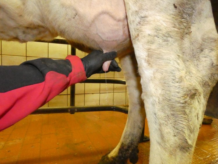 - Das Euter wird von Hand geprüft und gesäubert. Quelle: Manuel Ernst