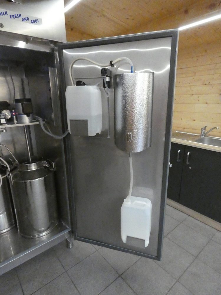 - In der Innenseite des Automaten ist ein Wasserbehälter angebracht, dieser spült die Anlage nach jeder Milchentnahme. Quelle: Manuel Ernst