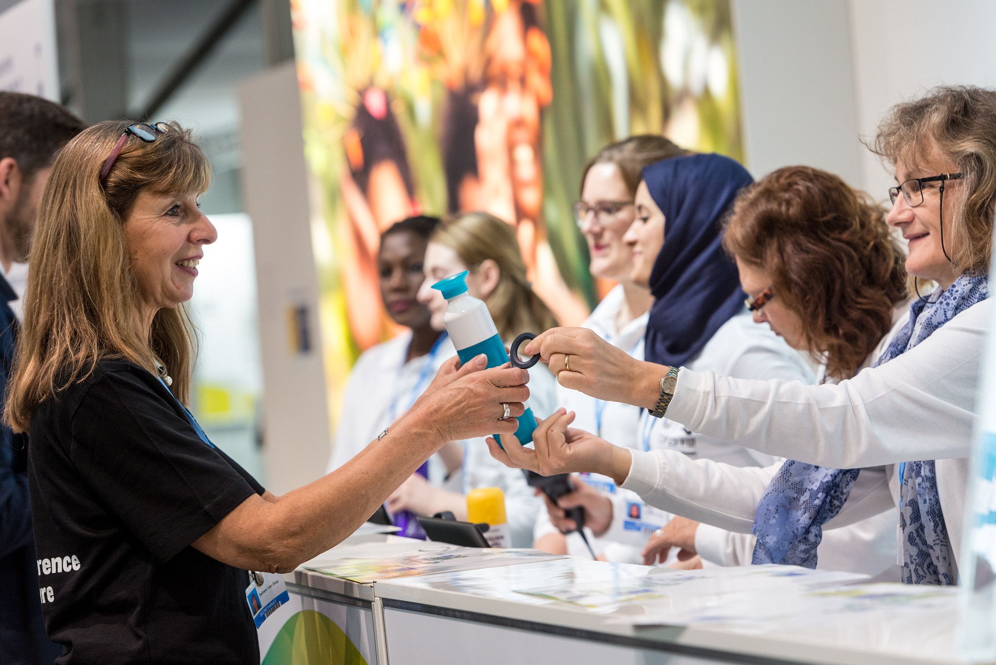 - Die persönlichen Trinkflaschen werden an die Teilnehmer ausgegeben, BMUB, Foto: Nils Klinger