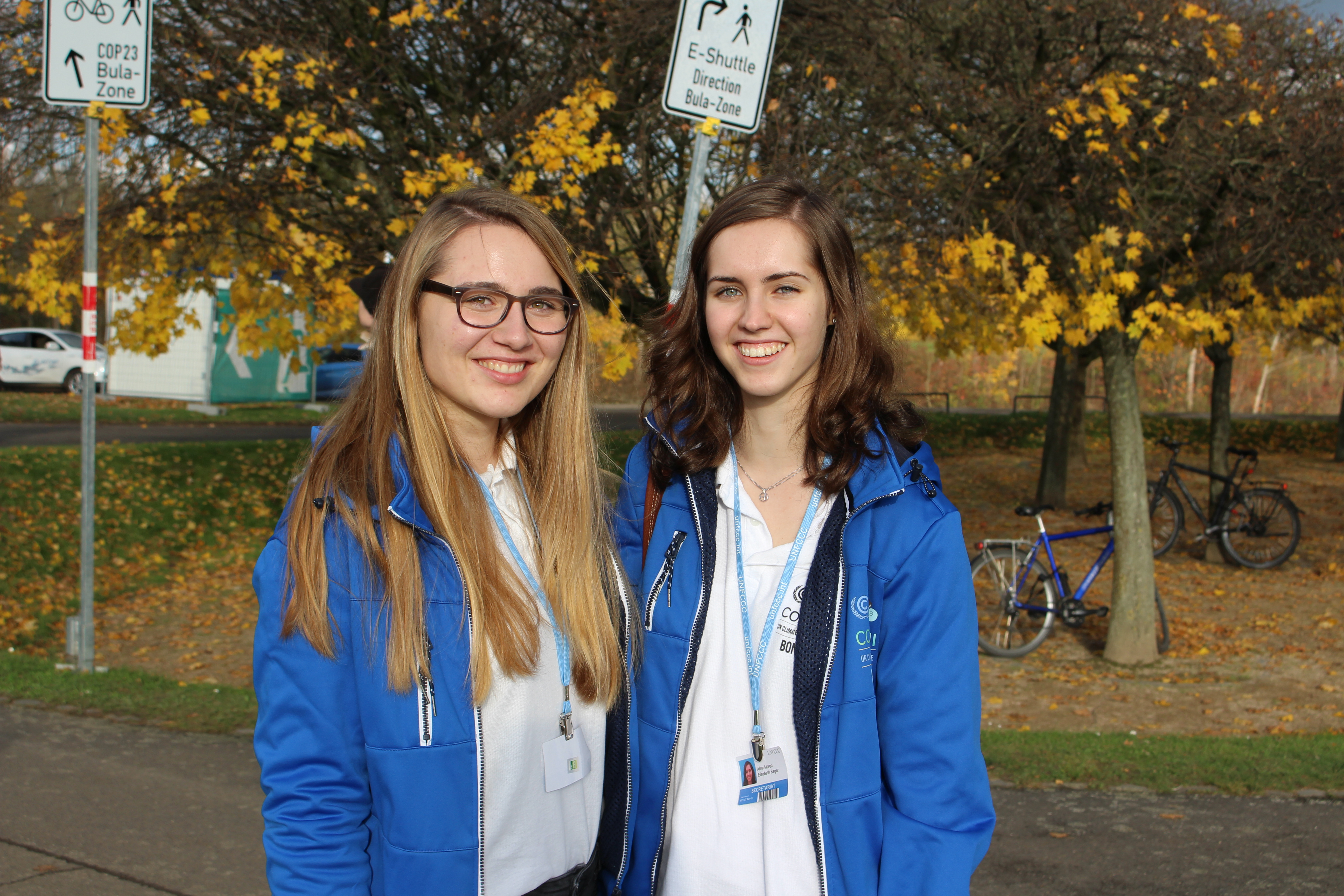 - “Wir haben Aufträge für Flyer bekommen, die wahrscheinlich niemand mehr lesen wird. Die Konferenz ist ja beinahe vorbei”- Aline Sager und Katharina Steinschulte Freiwillige im Print-Office der COP 23, Foto: Alexander Grabowski